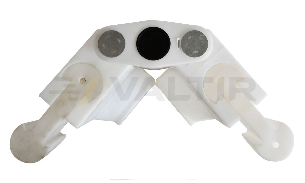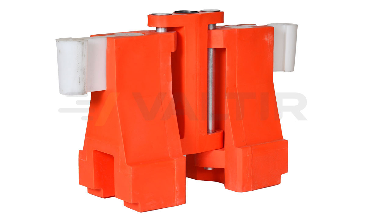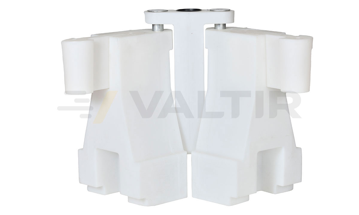 The Yodock® 2001M and 2001 MB Corner Connector Barricade provides a pivot point which allows articulation between adjacent Yodock® units to accommodate various terrains.