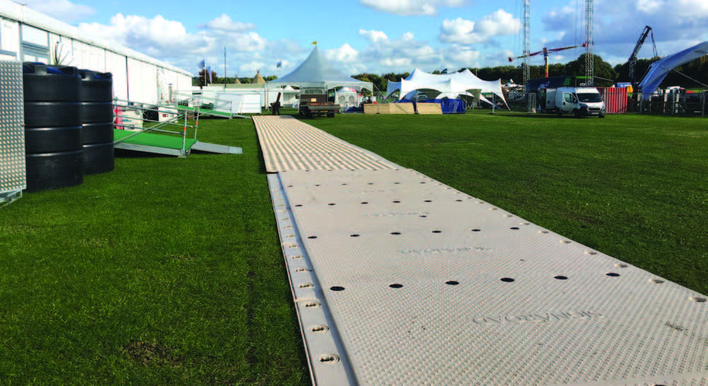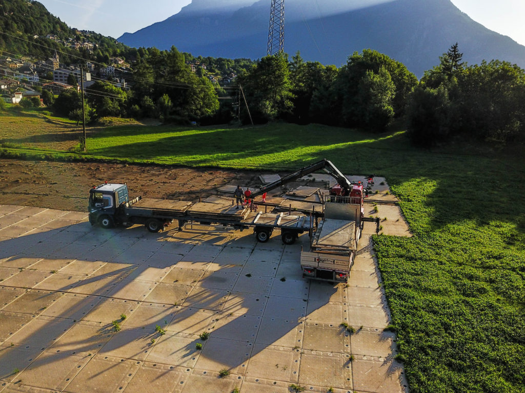 Designed for high-traffic worksites, such as construction sites, oil rigs and power transmission sites. Bearing up to 600 psi, this system can support heavy equipment and vehicles over various terrain and climate. MegaDeck® HD’s composition of HDPE, UV-protection, anti-static and other additives makes it non-absorbent which helps prevent cross-contamination or degradation, warping, and breaking due to adverse weather conditions. MegaDeck® HD features a locking system which allows the connection of panels easily and in a variety of configurations using a single T-bar tool. Mats are laid together seamlessly due to their 12” flanges which guides the mat into place.