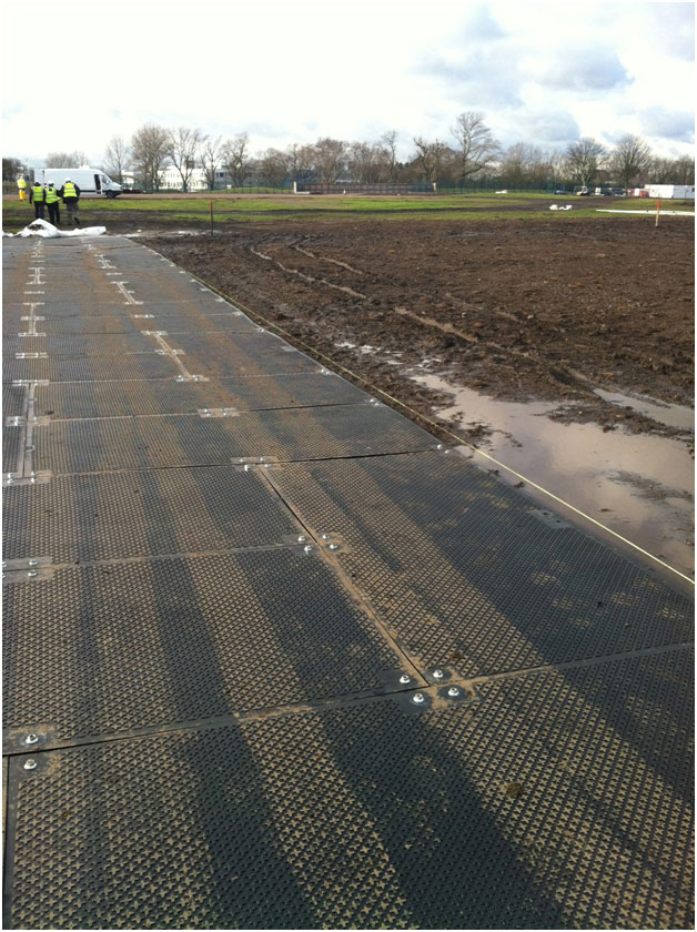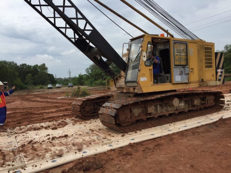 Transform rough, soft, or unstable ground conditions into stable and weatherproof surfaces. Install our composite mats to easily transport specialized service vehicles and components or create a staging and storage area for equipment, mobile offices, or trailers with weight-bearing capacities of up to 600 psi. The access mats are made of High-Density Polyethylene (HDPE) with specialized fillers for strength, plus UV and anti-static additives to withstand the rigors of heavy construction.